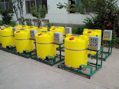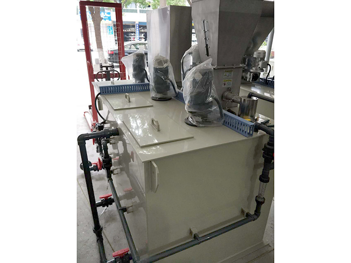 裝配完整的每套干粉自動加藥裝置包括輸粉機、料倉、槽體及干粉浸潤裝置、浮球液位控制器、攪拌機、進水管路配件及儀表、計量泵及其安裝附件。